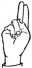 На ћирилици написано НАДЈА АЦАМОВИЋ састоји се из 13 слова [?]. Исписано ћириличном једноручном азбуком за глувонеме: